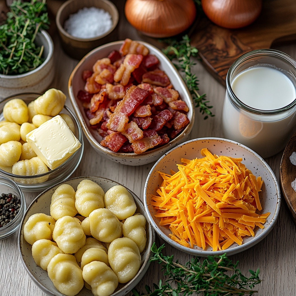 A rich and hearty Bacon Cheddar Gnocchi Soup that combines crispy bacon, tender potato gnocchi, sharp cheddar cheese, and fresh herbs in a creamy broth. Perfect for a comforting meal on chilly days, this soup is easy to make using simple stovetop techniques.