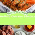 Crispy baked Buffalo Chicken Tenders coated in a flavorful seasoned breadcrumb crust and tossed in a classic spicy buffalo wing sauce. This easy-to-make, game day favorite is perfect for a satisfying main course with a kick of heat.