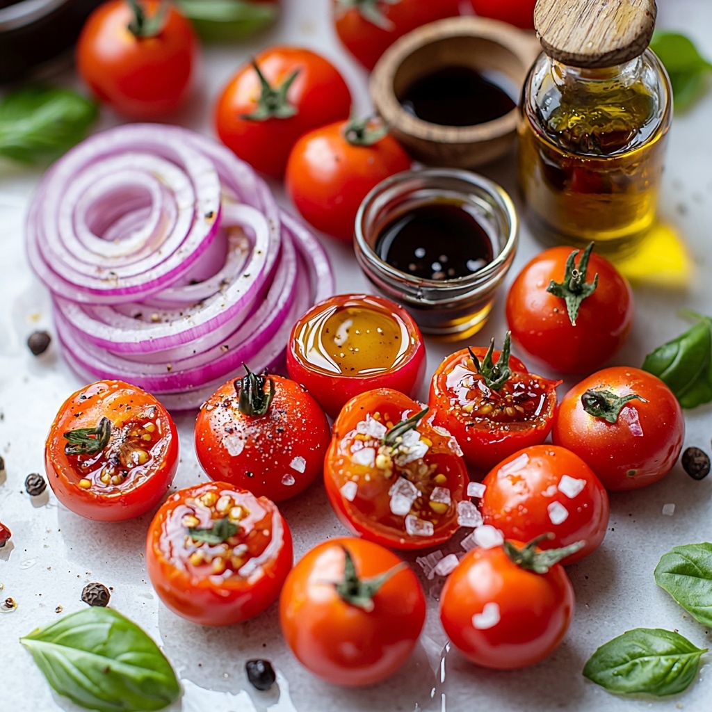 This Cherry Tomato Onion Salad with Balsamic Recipe rests on the magic of just a few, simple ingredients—each playing an essential role in creating a dish that’s fresh, flavorful, and visually stunning. Choosing quality ingredients means every bite bursts with vibrant taste and texture.