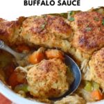 This Chicken Pot Pie with Buffalo Sauce is a flavorful twist on the classic comfort food. Tender shredded chicken is cooked with a medley of sautéed vegetables and seasoned with a spicy buffalo sauce. Topped with cheesy, buttery biscuit pieces instead of traditional pie crust, this hearty dish is baked to golden perfection and perfect for cozy dinners.