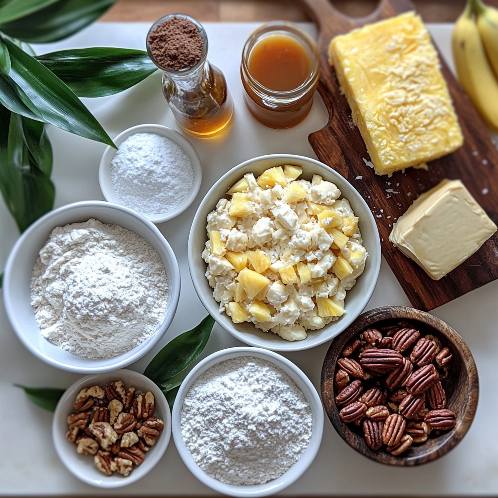 The beauty of this Classic Hummingbird Cake Recipe lies in its simple yet thoughtfully chosen ingredients. Each item plays a key role in creating the moist texture, balanced sweetness, and complex flavor profile that makes this cake so unforgettable. From ripe bananas adding natural sweetness and moisture to warm cinnamon that gives it a gentle spice, every ingredient is essential.