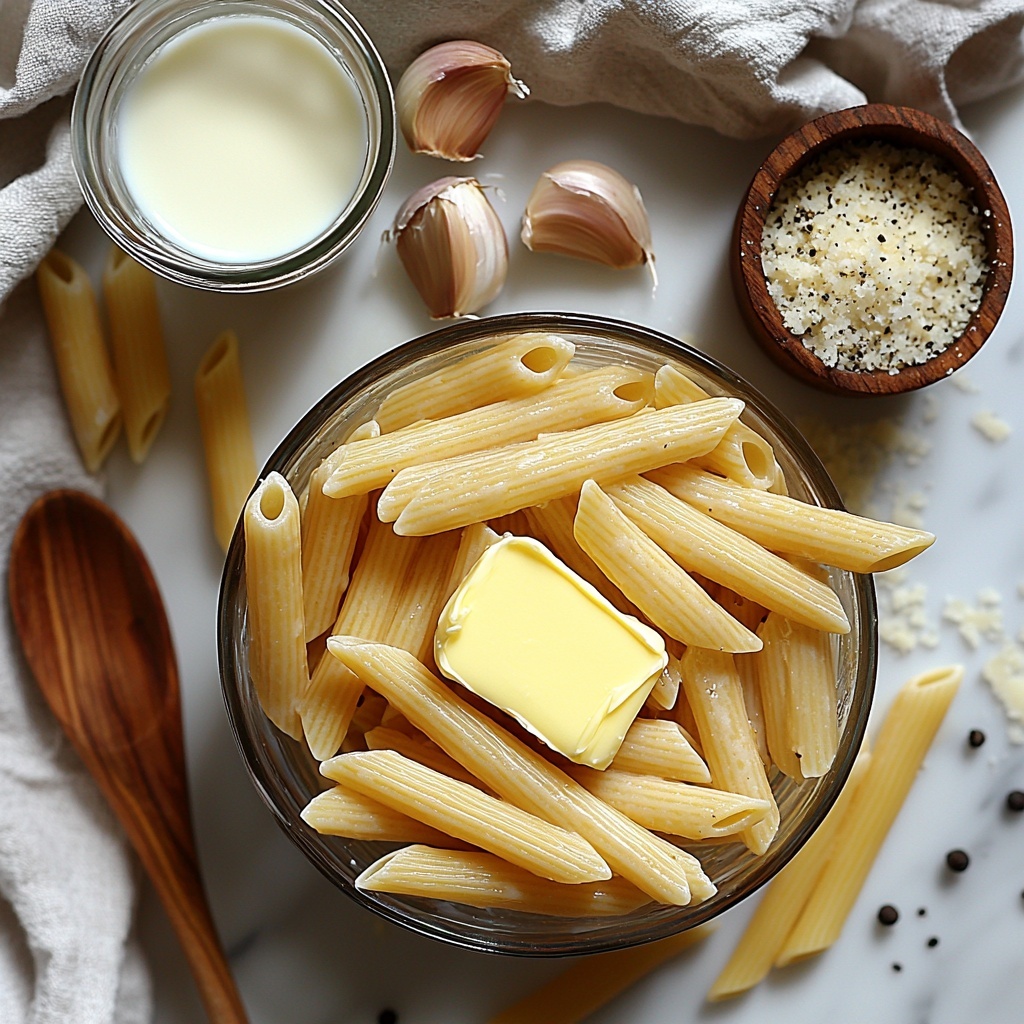 Start by boiling your penne pasta according to the package instructions until it’s al dente, meaning it should have a slight bite to it but not be mushy. Once cooked, drain the pasta and set it aside. Getting this step right is crucial because the pasta texture provides the perfect canvas for that creamy, garlicky sauce to cling to.