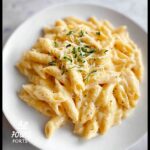 A rich and creamy garlic pasta made with penne, simmered in a savory butter, garlic, chicken broth, and cream sauce, finished with freshly grated Parmesan cheese for a comforting and delicious meal ready in just 15 minutes.