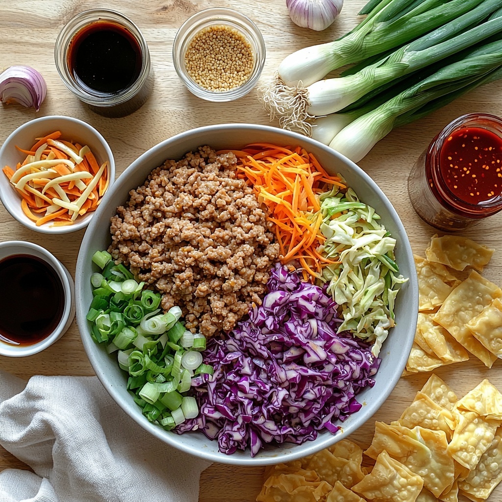 All the ingredients in this Crockpot Egg Roll In A Bowl Recipe are straightforward but each adds something special—be it flavor, texture, or color—that makes the final dish shine. From the juicy ground meat to the crisp coleslaw mix and aromatic seasonings, every bite bursts with balanced, crave-worthy goodness.