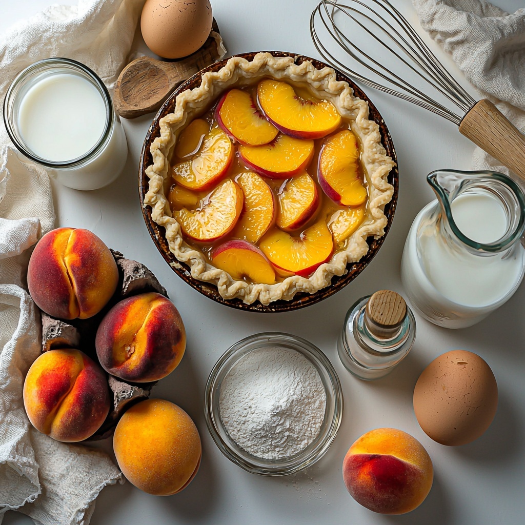 Getting your ingredients right is the first step to creating this memorable pie. Thankfully, everything you need is straightforward but essential, each playing a crucial role in achieving that smooth custard texture, lovely golden crust, and peachy burst of succulent flavor.