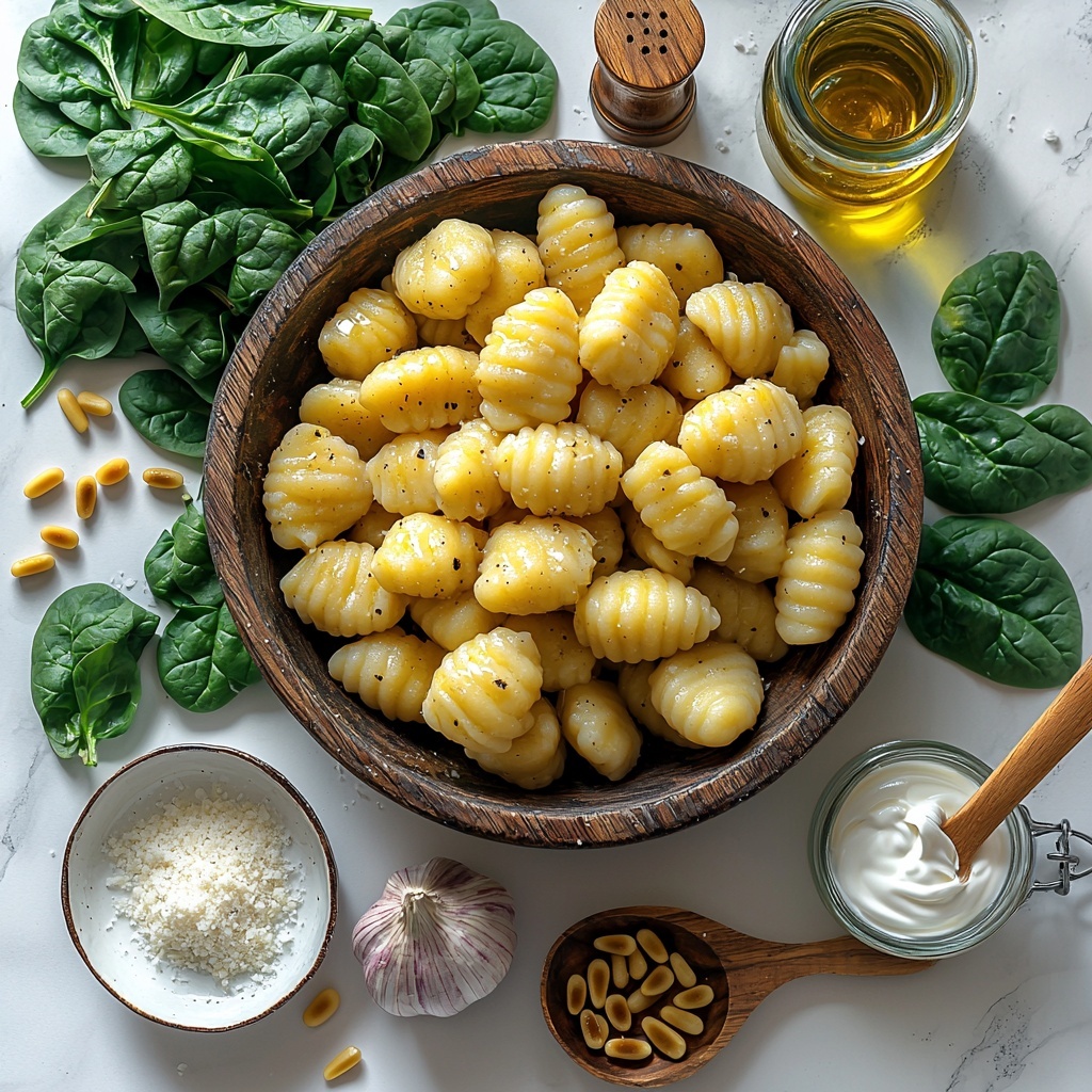 What makes this Easy 20-Minute Creamy Spinach Gnocchi for Cozy Dinners Recipe so special is how it relies on a handful of simple, fresh ingredients that each bring their unique magic. From the soft gnocchi to the vibrant spinach, every component builds flavor and texture effortlessly.