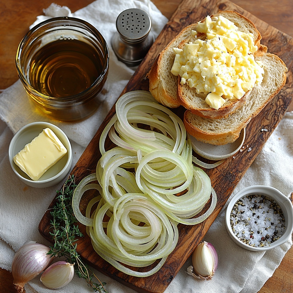 Gathering the right ingredients for this French Onion Soup Recipe is straightforward, and each component plays a crucial role. Fresh yellow onions provide sweetness and depth, while beef broth forms the savory backbone. Simple pantry staples like butter and olive oil develop the perfect base flavor and texture, and the Gruyère cheese adds that irresistible creamy, nutty finish.
