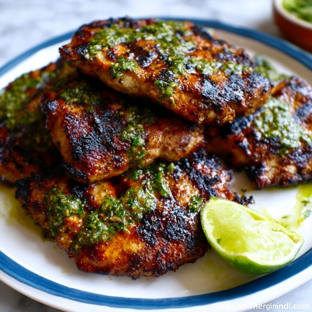 Adding freshly chopped cilantro brings a burst of herbal freshness and vibrant green color that contrasts beautifully with the warm hues of the grilled chicken. Lime wedges are perfect for guests to add an extra splash of citrus zing, enhancing the bold marinade flavors and elevating each bite with a lively tang.