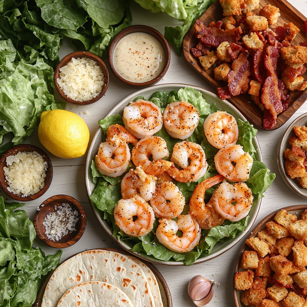 The beauty of this Grilled Shrimp Caesar Wraps Recipe is in its simple yet essential ingredients. Each one plays a crucial role in building layers of flavor, combining smoky, tangy, creamy, and crunchy elements that make this wrap extraordinary.