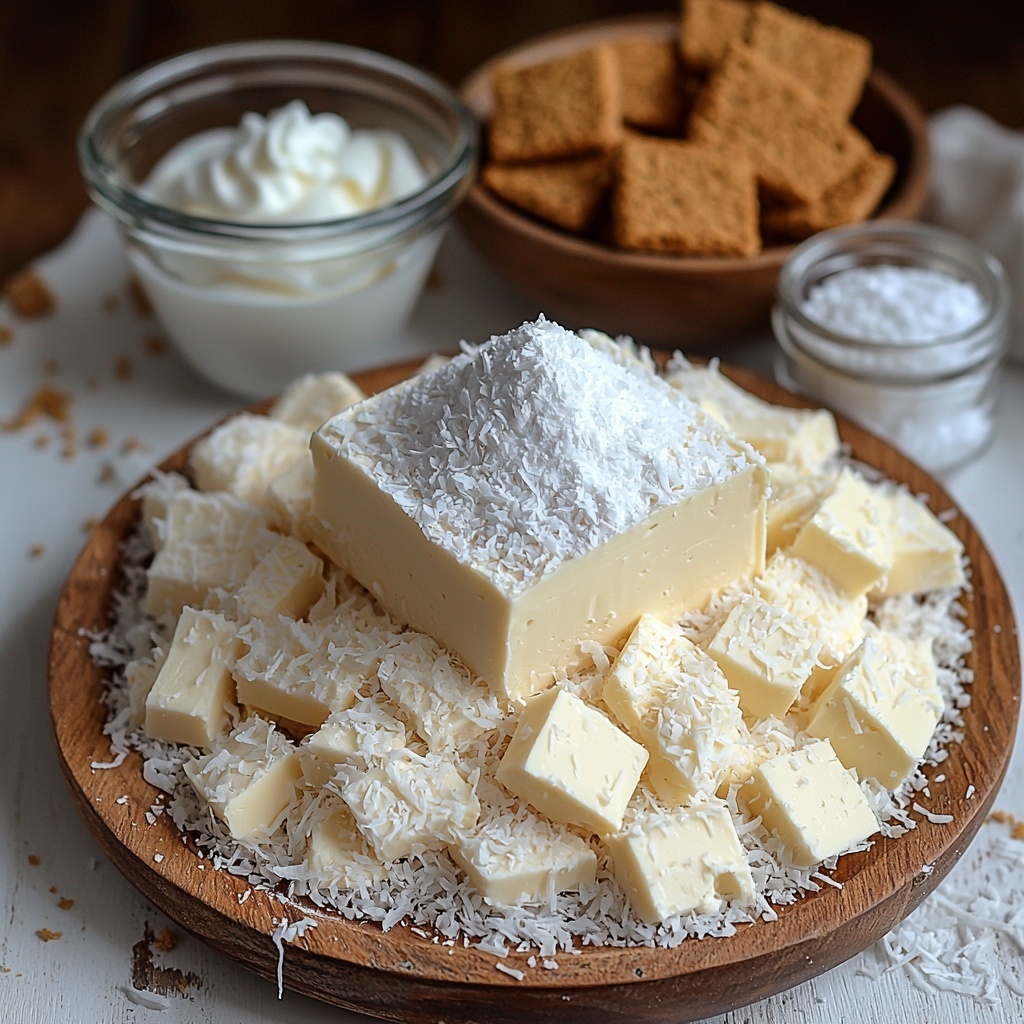 Gathering just a handful of simple but thoughtfully chosen ingredients is the secret behind these luscious No-bake Coconut Cheesecake Bites. Each plays a vital role — from the crunchy, buttery base to the smooth, sweet filling, and that tropical coconut charm that wraps every bite in pure indulgence.